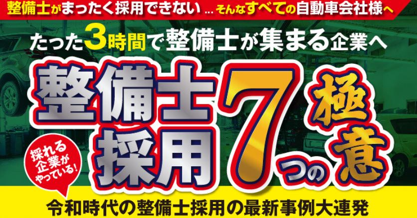 人材採用・人材募集ドットコム > 人材募集 > 【船井総研:10月開催】整備士採用最新時流セミナー~成功企業の7つの採用手法~
