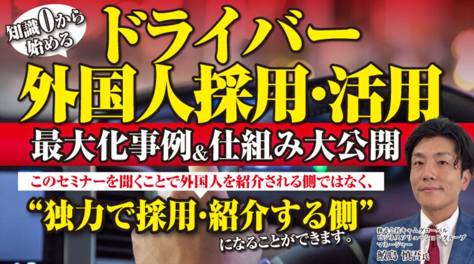 人材採用・人材募集ドットコム > 人材募集 > 【船井総研:11月~12月】《知識0から始める》運送業×外国人ビジネス新規参入セミナー