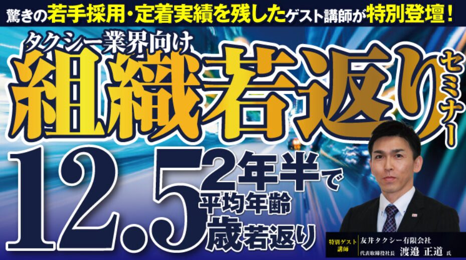 人材採用・人材募集ドットコム > 人材募集 > 【船井総研:12月開催!】若者が集まる会社になる!タクシー会社若返り戦略セミナー